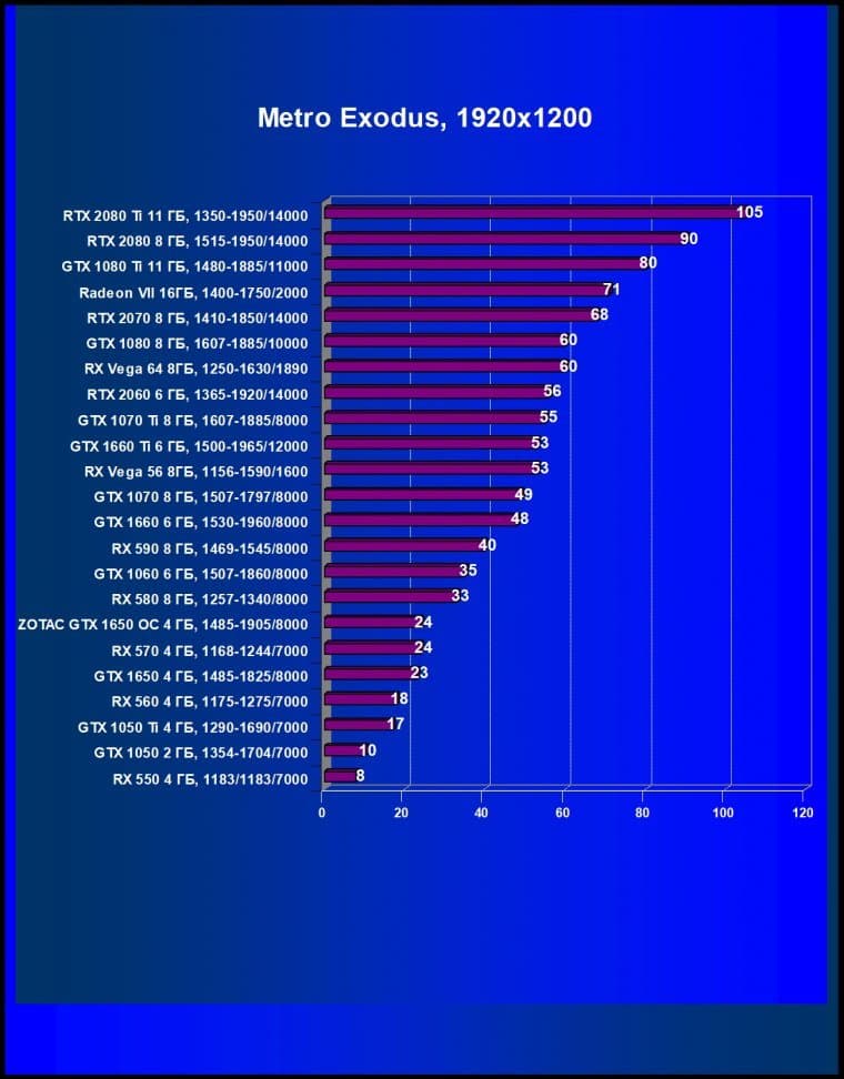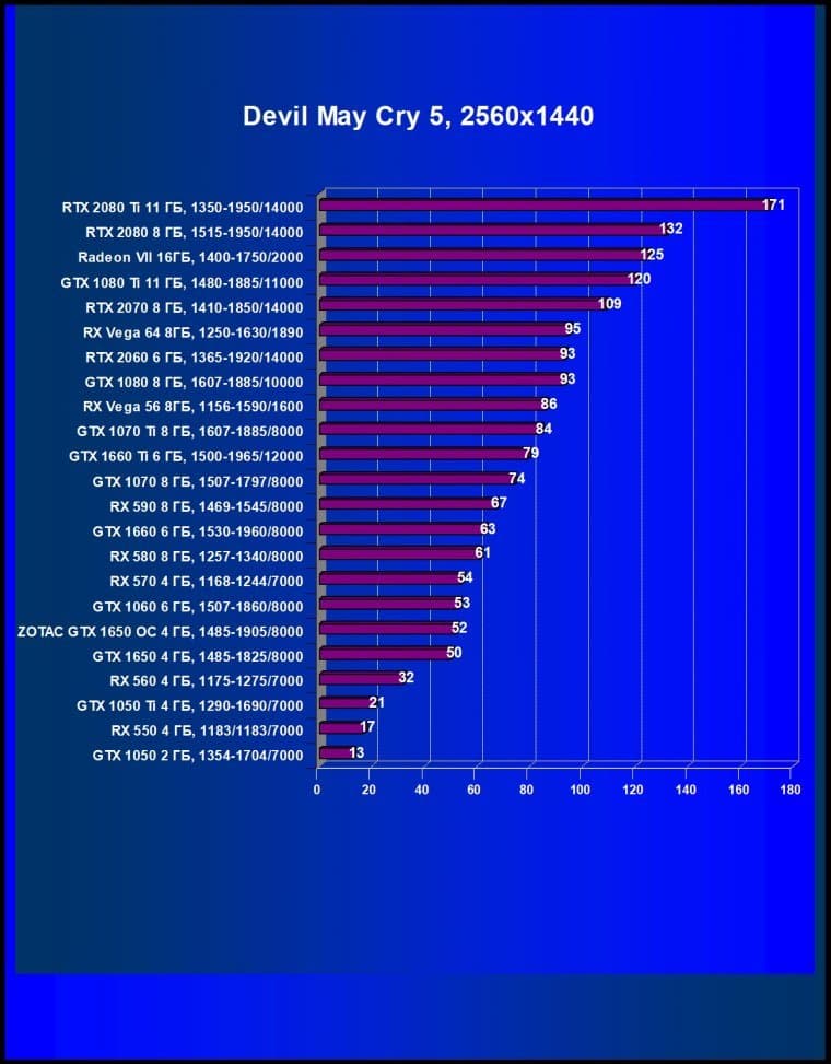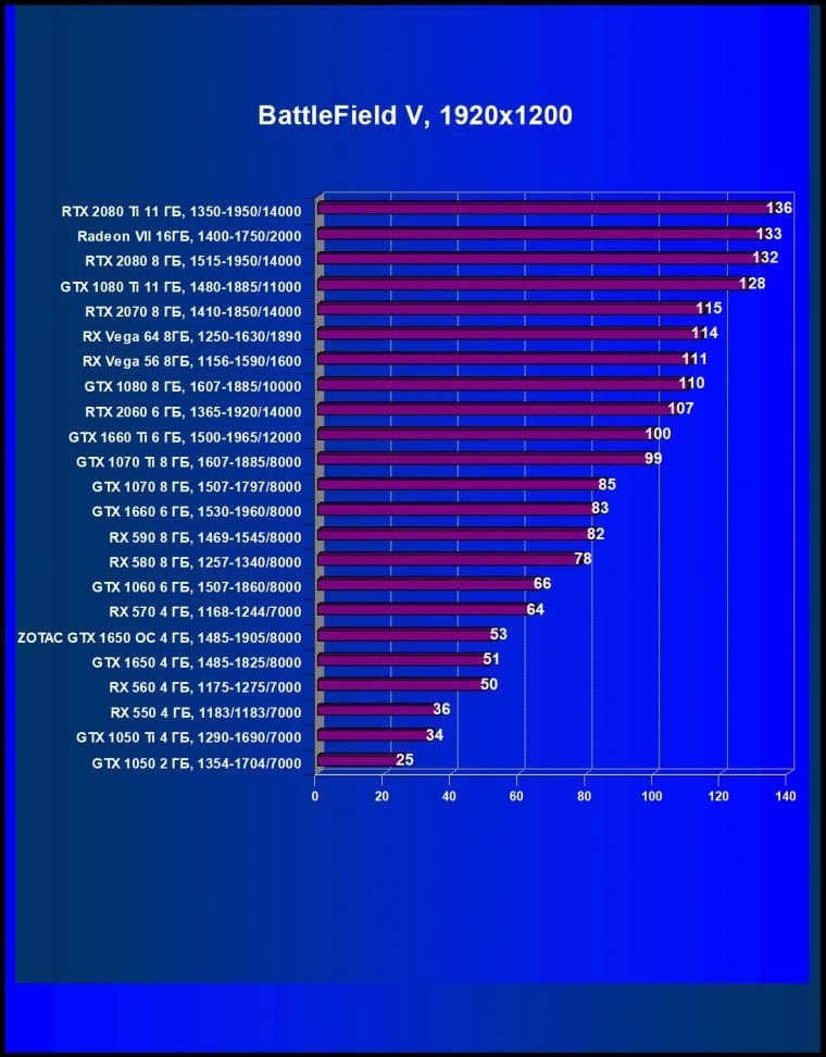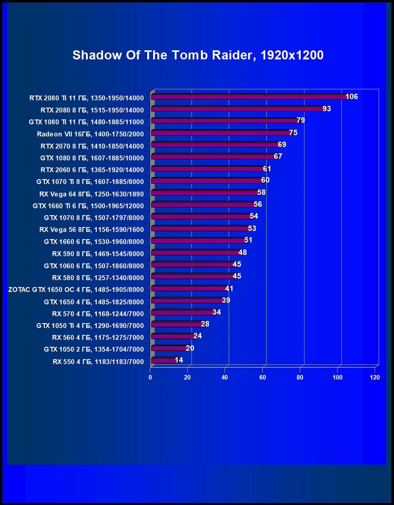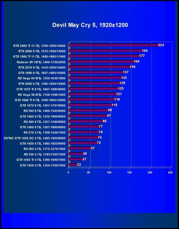 | 19 | GTX 1650 4 ГБ, 1485—1825/8000 | 300 | 303 | 9900 |