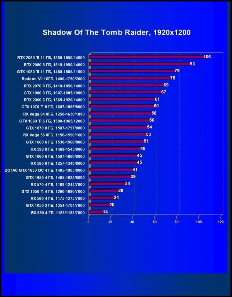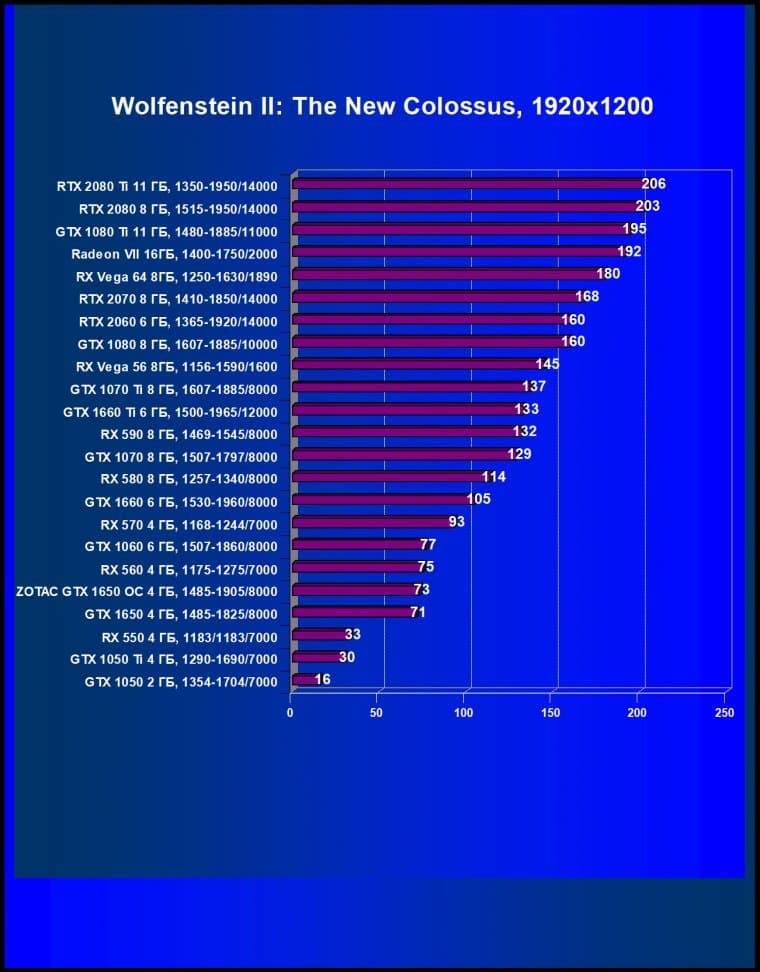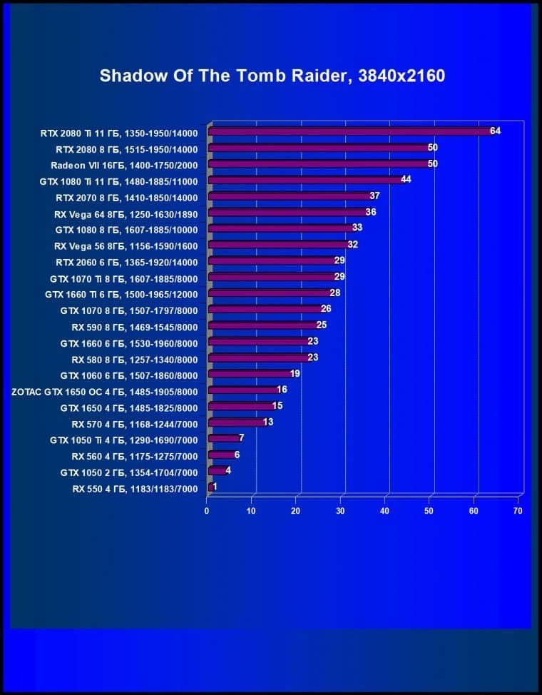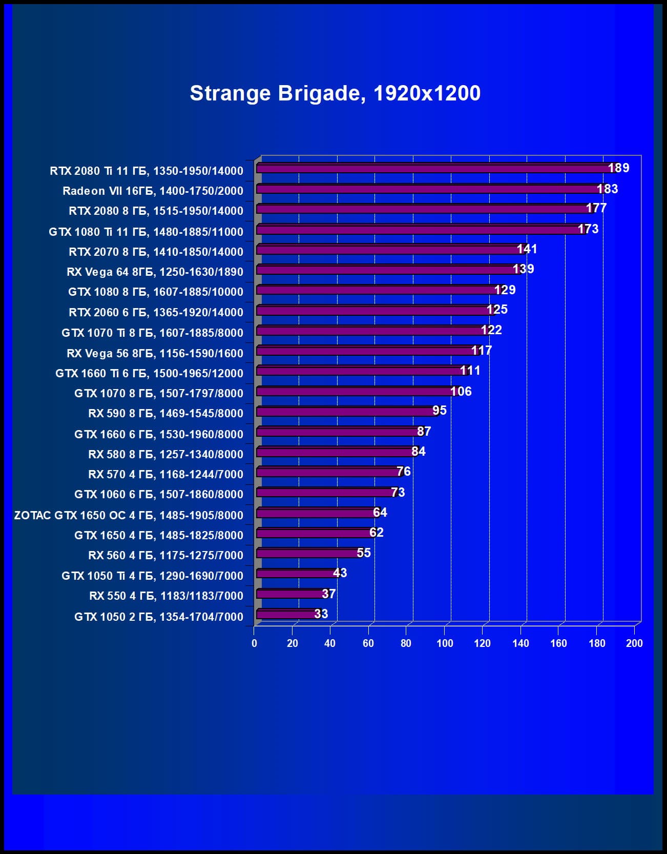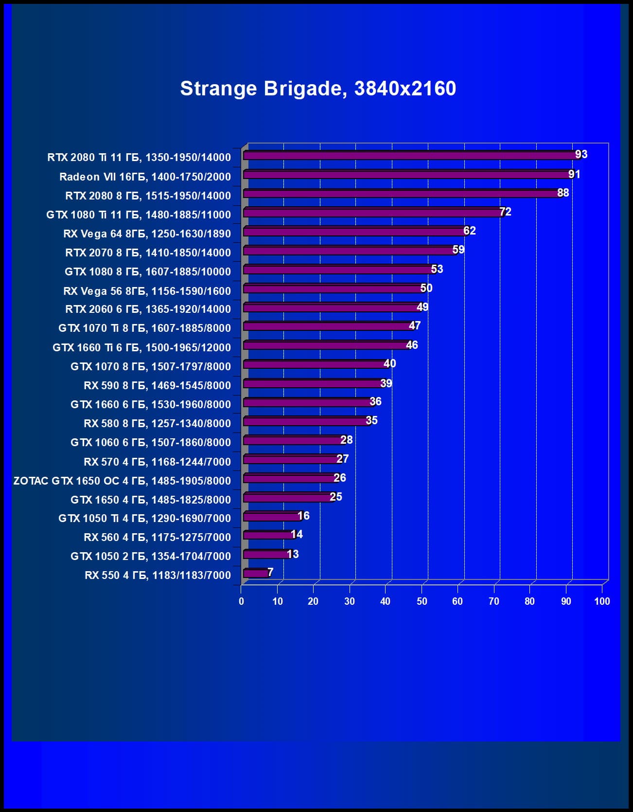 | 19 | GTX 1650 4 ГБ, 1485—1825/8000 | 300 | 303 | 9900 |