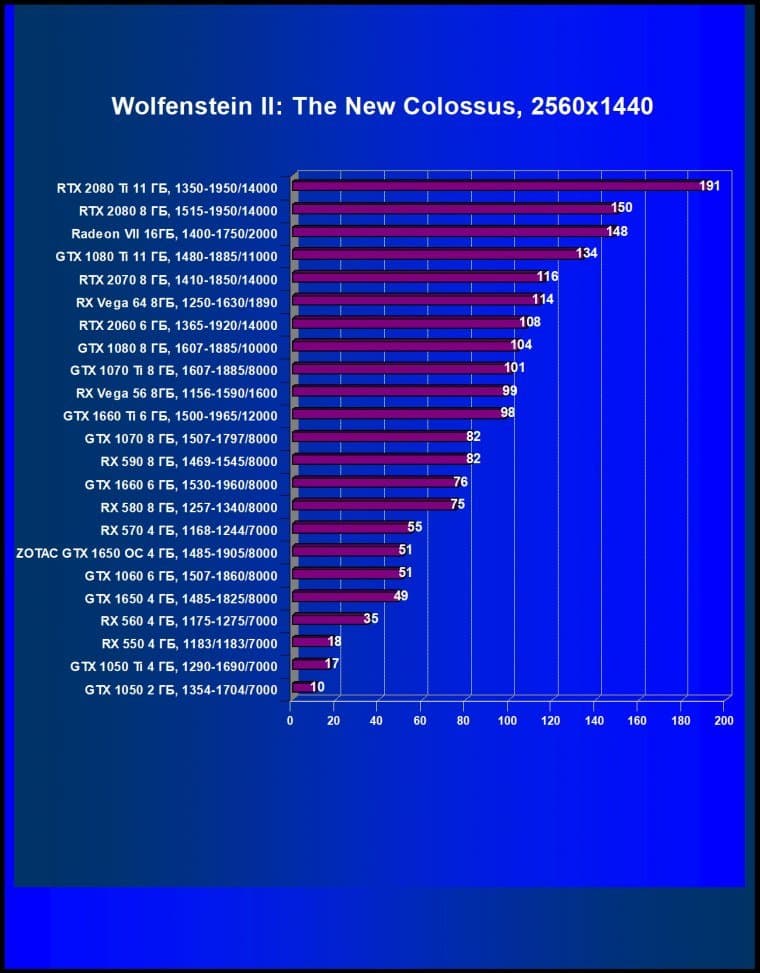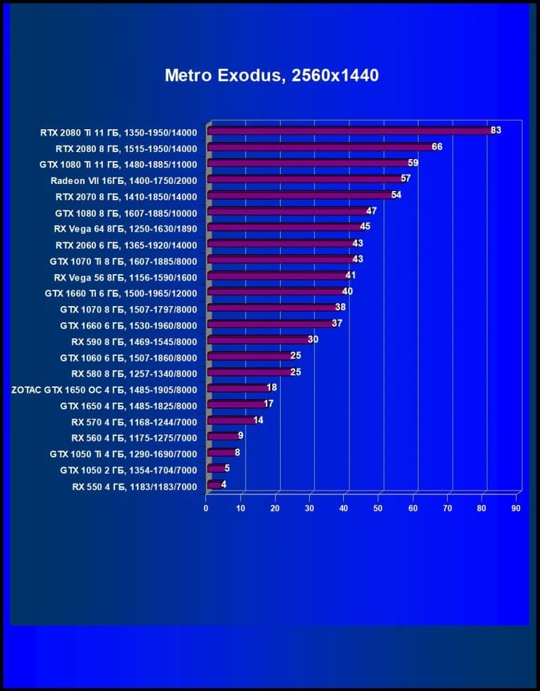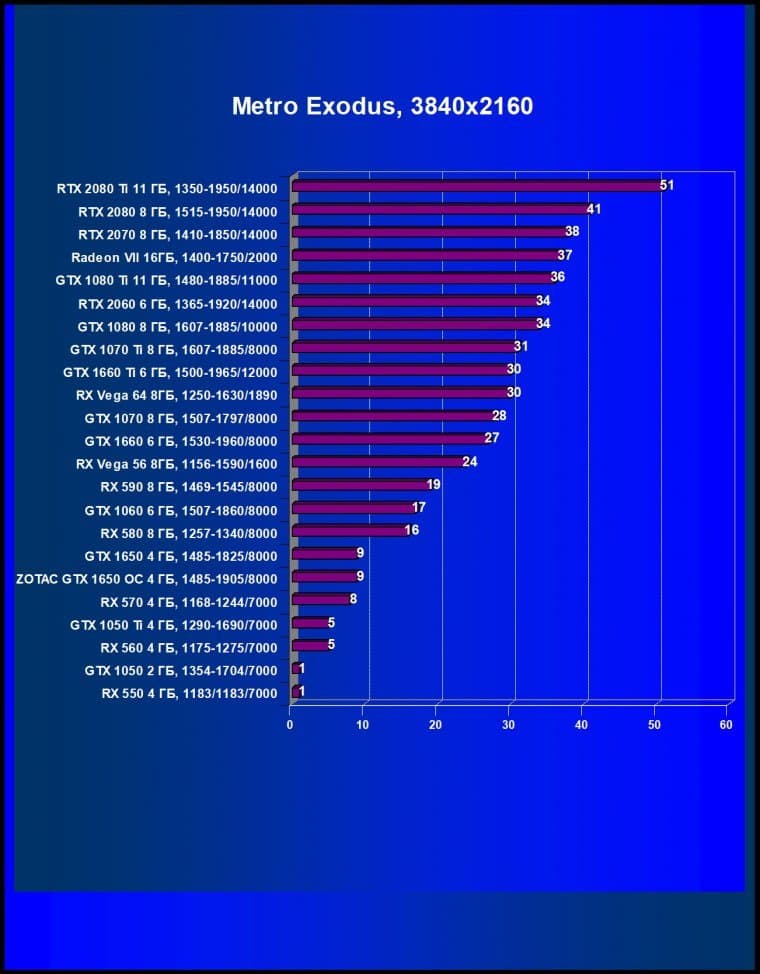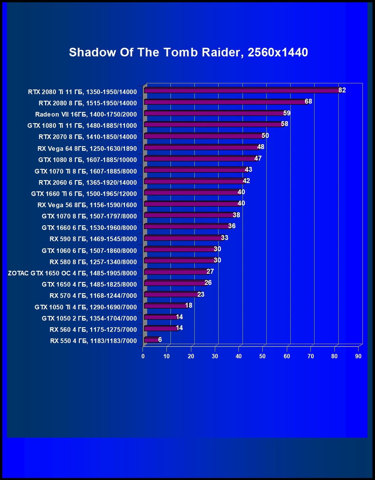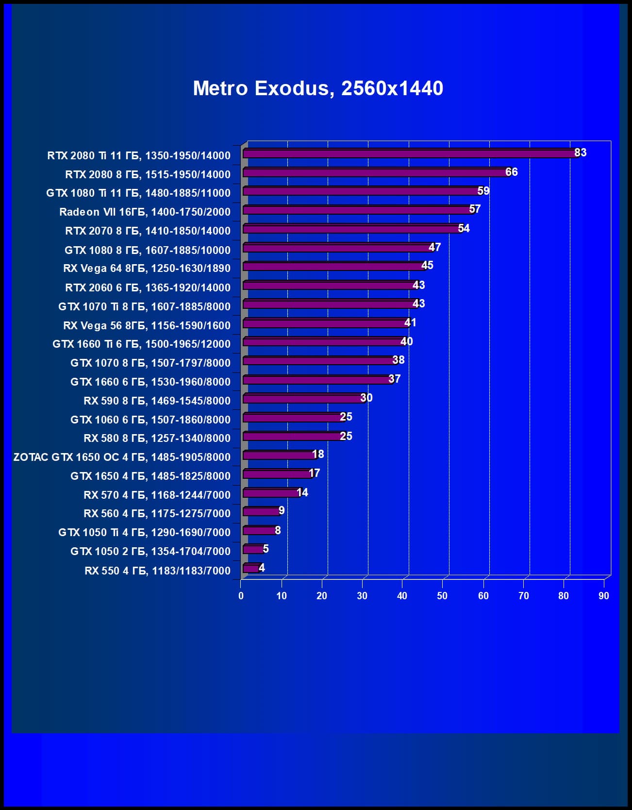 | 03 | Zotac GTX 1650 OC 4 ГБ, 1485—1905/8000 | 310 | 310 | 10 000 |