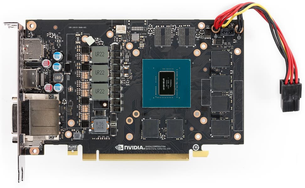 Мы сравниваем новинку с GeForce GTX 1060, потому что, во-первых, у нас нет фотографий референсной карты GeForce GTX 1050 Ti (Nvidia не рассылала их СМИ в свое время), а во-вторых, по производительности GeForce GTX 1650 в основном попадает в промежуток между GeForce GTX 1060 3 ГБ и GeForce GTX 1060 6 ГБ, так что сравнение в принципе логичное, хотя шины обмена с памятью у этих карт разные: в случае GeForce GTX 1060 — 192 бит, в данном случае — 128 бит.