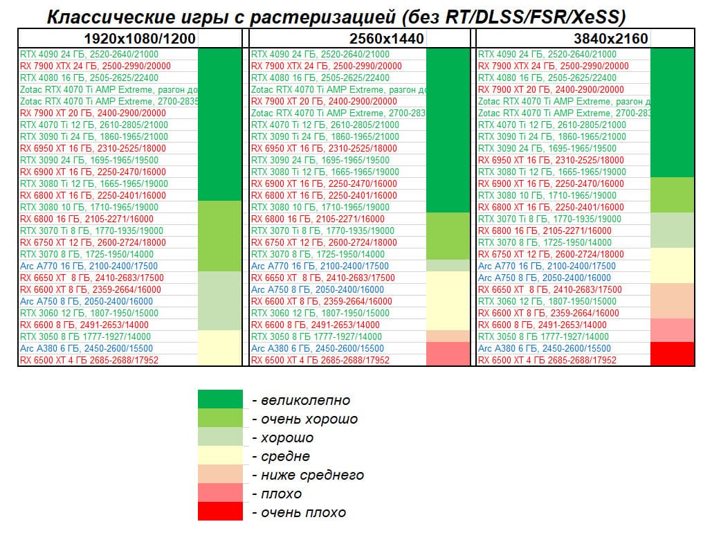 В вышеуказанном разрешении смогут себе позволить поиграть владельцы RTX 4090/4080/4070 Ti/3090 Ti/3090/, а также RX 7900 XTX/7900 XT/6950/6900 XT, да и то для приемлемого комфорта в таких играх требуется обязательная поддержка DLSS (или FSR). Однако поиграть все же можно.