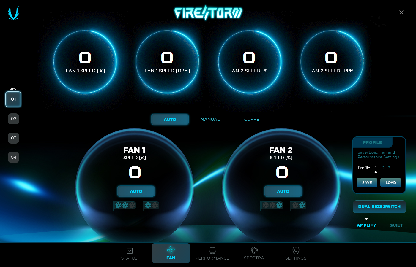 Amplify (производительный) и Quiet (тихая работа системы охлаждения). Для простоты я обозначил первый как BIOS 1, второй BIOS 2.