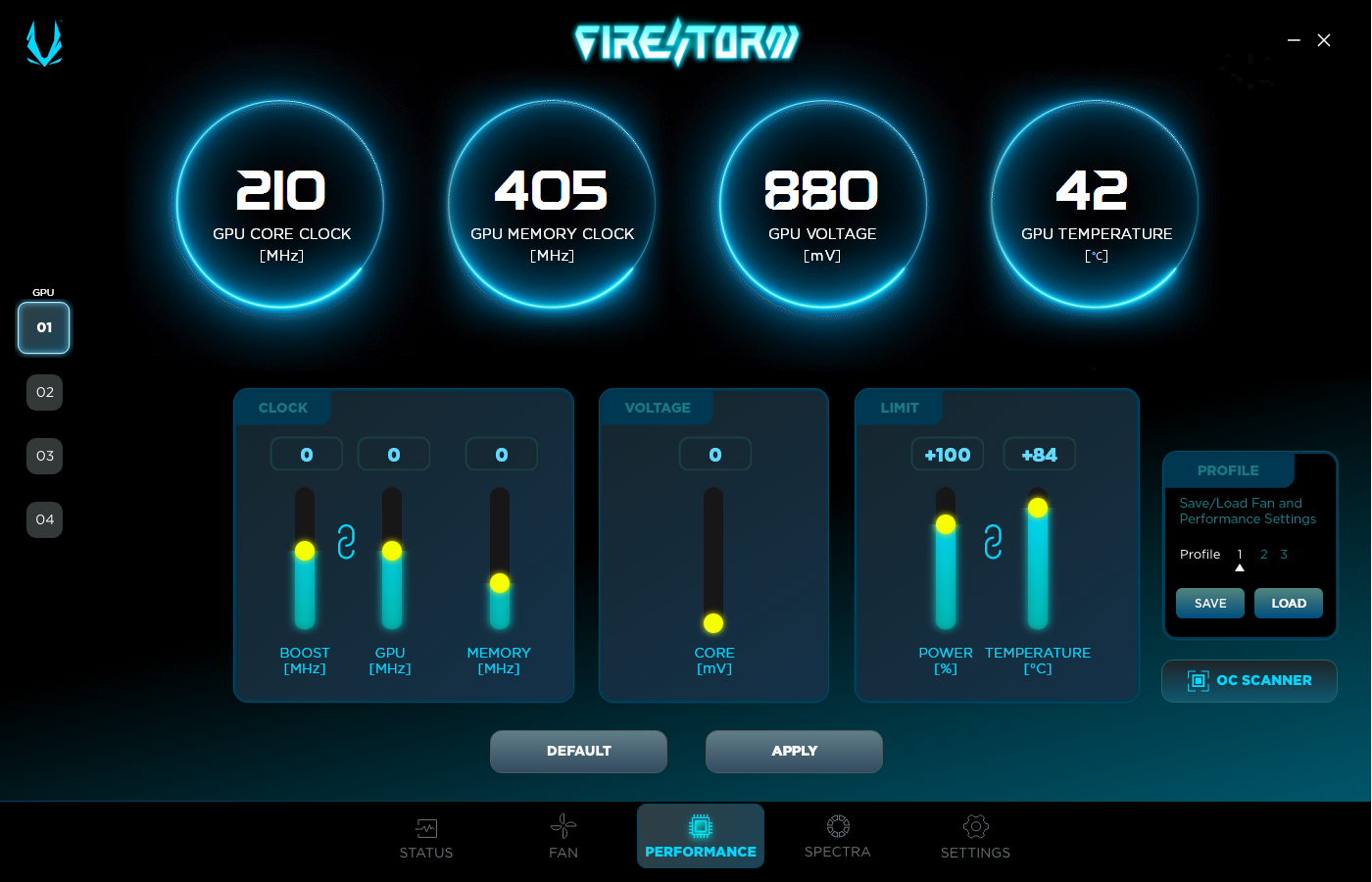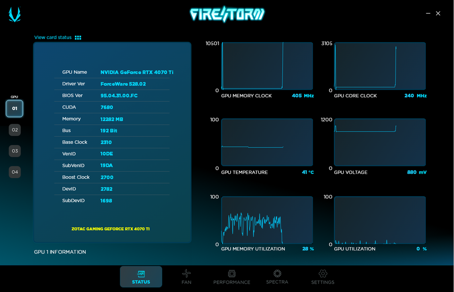 Через фирменную утилиту Zotac Fire Storm можно управлять работой карты.