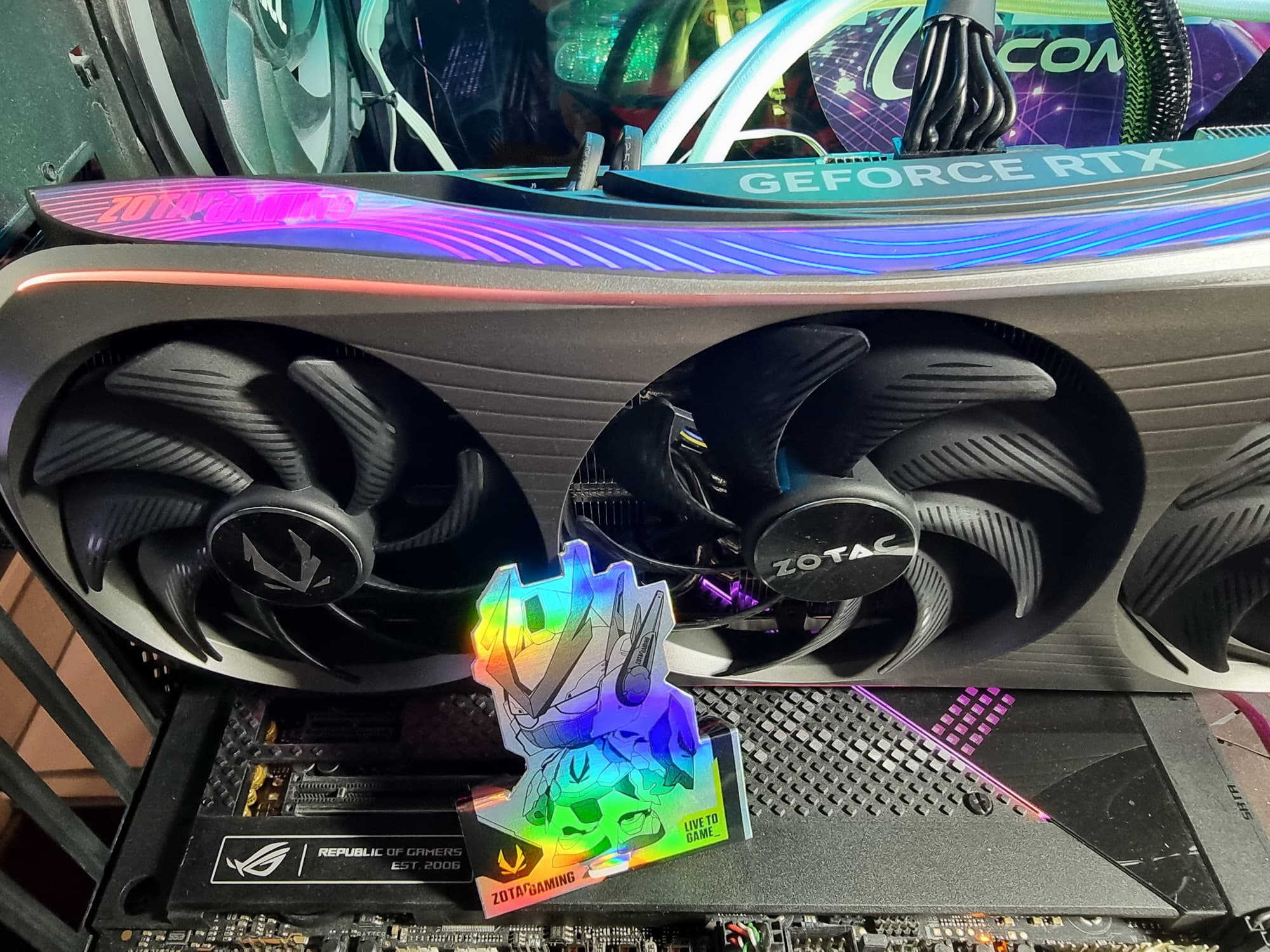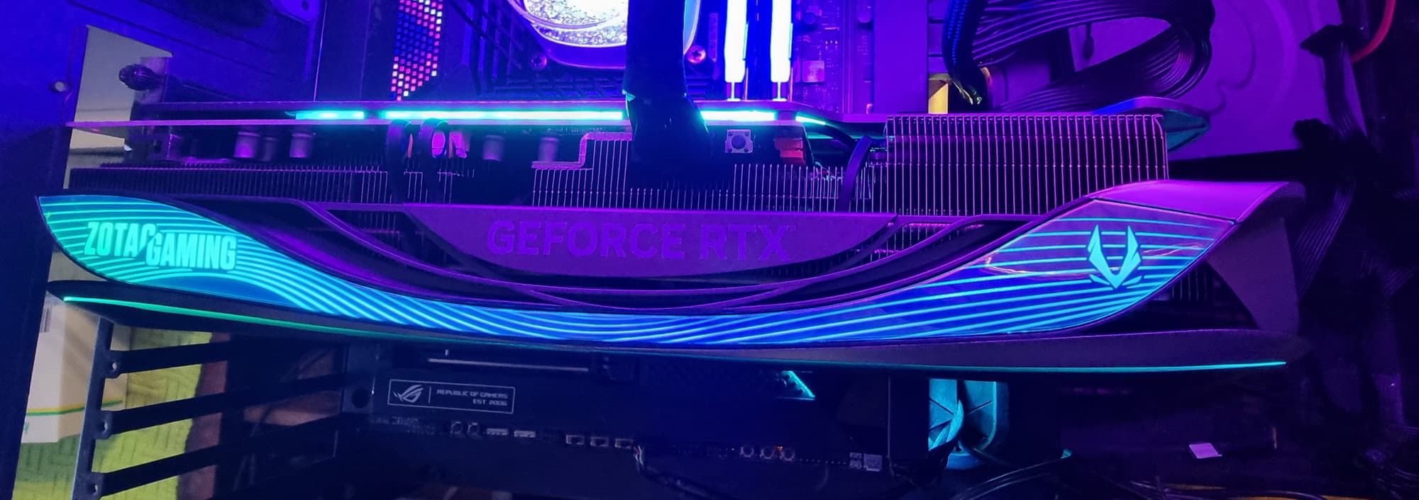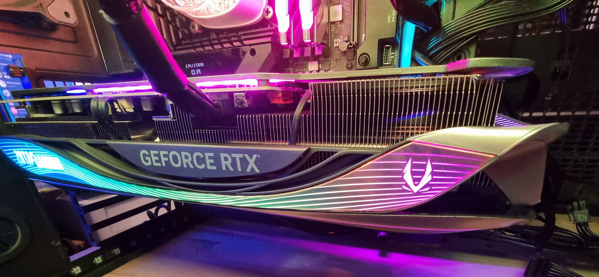 В общем, экспериментируя с освещением внутри ПК и подсветкой самой карты можно найти очень интересные сочетания, когда карта смотрится очень экзотично и перестает быть похожей на видеокарту.