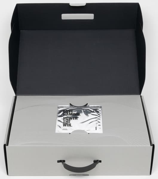 Карта имеет пять зон подсветки: изогнутая полоса с голографическим эффектом на верхнем торце, тонкий обод по периметру кожуха, логотип на оборотной стороне, полоса вдоль верхнего торца и вырезы в хвостовой части карты.