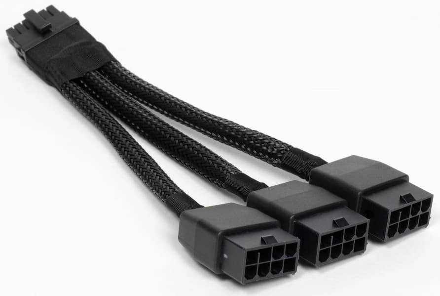 В комплекте поставки карты имеется переходник на такой разъем с трех обычных 8-контактных (хорошо всем знакомых).