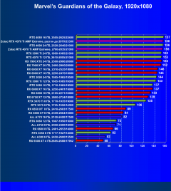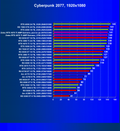 Я думаю, что диаграмма выше всё прекрасно демонстрирует: даже в разрешении 4K во многих играх общая производительность ограничивается уже не видеокартой, а другими компонентами системы, чаще всего упирается в возможности центрального процессора. Что касается карты Zotac, то она явно входит в пятерку-шестерку лидеров, и этой карте по плечу любое из представленных выше разрешений при условии игры с максимальными настройками графики (но без рейтрейсинга и/или DLSS/FSR/XeSS).