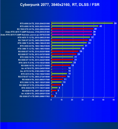 Результаты тестов со включенной аппаратной трассировкой лучей и/или DLSS/FSR в разрешениях 1920×1200, 2560×1440 и 3840×2160