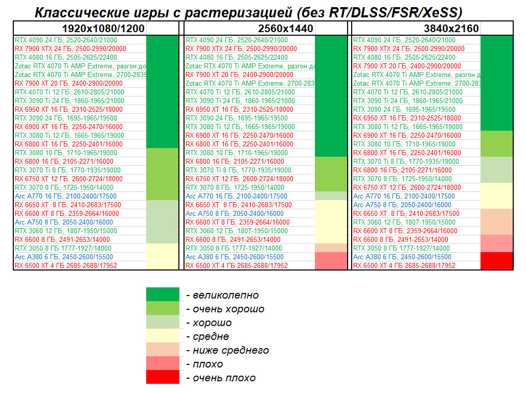 | 05 | RX 7900 XTX 24 ГБ, 2500—2990/20000 | 830 | 79 | 105 000 |