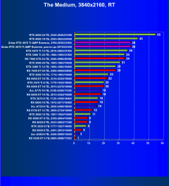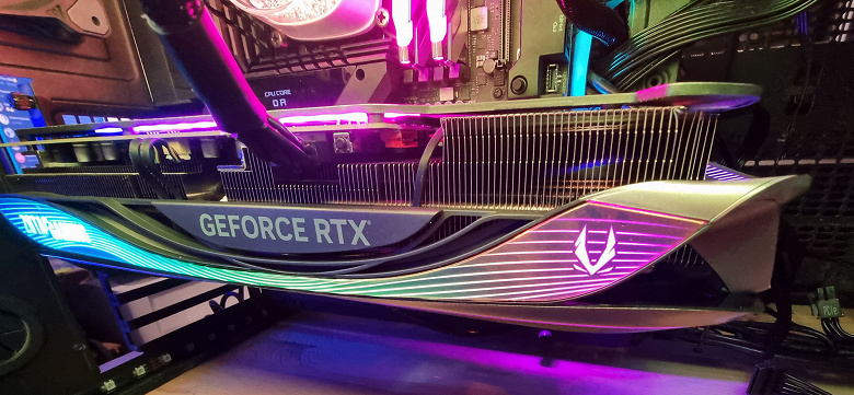 Разумеется, включение RT снижает производительность, однако реализованные уже практически во всех играх с трассировкой лучей технологии Nvidia DLSS и AMD FSR (а то и Intel Xess) сильно помогают компенсировать падение скорости от использования RT. Конечно же, в первую очередь от них выигрывают новые топовые продукты, и видеокарта Zotac в четверке лидеров.