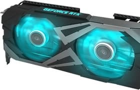 Palit GeForce RTX 3080 Ti Gaming Pro (12 ГБ) — добротный представитель флагманского игрового ускорителя на базе GeForce RTX 3080 Ti, ожидаемо один из самых недорогих. Видеокарта Palit занимает три слота в системном блоке, однако ее длина менее 30 см, поэтому карта уместится почти в любой корпус. СО отличается хорошей эффективностью — правда, и шумит при этом существенно. У карты отличная система питания, но ручной разгон практически невозможен из-за жесткого лимита по энергопотреблению. Стоит отметить стильный внешний вид с диагональной подсветкой, а также комплект поставки с акриловым кронштейном.