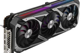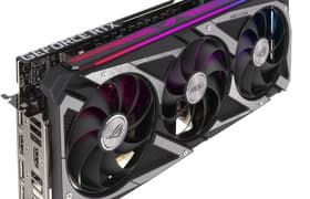 Asus ROG Strix GeForce RTX 3080 OC Edition (10 ГБ) — одна из самых длинных существующих видеокарт, что обязательно надо учитывать при выборе. Система охлаждения просто отменная! Даже в режиме Performance mode шум лишь заметен и не напрягает, а в режиме Quiet mode карта и вовсе работает тихо. Ускоритель может потреблять до 370 Вт, у него три 8-контактных разъема питания, наличие очень мощного БП обязательно. Также желателен хорошо продуваемый корпус, поскольку весь нагретый воздух видеокарта оставляет внутри системного блока. На сегодня это самая производительная карта на базе GeForce RTX 3080, имеющая максимальный фабричный разгон. Лимит потребления существенно ослаблен, что позволяет разогнать ускоритель еще сильнее, получая производительность уже почти как у GeForce RTX 3090!