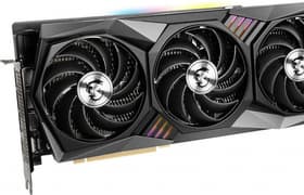 MSI GeForce RTX 3080 Gaming X Trio (10 ГБ) — отличный представитель самого быстрого игрового ускорителя на сегодня. Карта имеет эффективную систему охлаждения, которая, впрочем, заметно увеличила габариты этой модели. Видеокарта MSI имеет немного повышенные частоты работы GPU, это обеспечивает небольшой прирост производительности. В комплекте поставки идет кронштейн-опора для монтажа в системный блок.