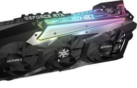 Видеокарта имеет достаточно эффективную систему охлаждения, но она весьма громоздкая, так что карта занимает три слота в системном блоке, а ее длина — более 30 см. Да, кулер шумноват, но имеет важное достоинство: возможность простого демонтажа вентиляторов для чистки СО без снятия ее с карты (в комплекте поставки есть угловая отвертка, поэтому можно даже не вынимать карту из ПК). Также надо упомянуть и наличие в комплекте поставки кронштейна для усиления жесткости довольно тяжелой видеокарты. Видеокарта Inno3D имеет немного повышенные частоты работы GPU, однако прирост от этого совсем крохотный. Чуть больше можно выжать из карты с помощью ручного разгона, однако разгон ограничен на уровне драйверов. Плата, по сути, основана на референс-дизайне с отличной системой питания, поэтому стабильность работы на высоте.