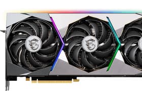 MSI GeForce RTX 3090 Suprim X 24G (24 ГБ) — на сегодня самый длинный представитель мощнейшего 3D-ускорителя GeForce RTX 3090, и такие габариты обязательно надо учитывать при выборе карты и корпуса! Карта сама по себе имеет весьма жесткую конструкцию (пластина соединяет PCB с крепежной планкой в единое целое), да еще в комплекте есть подставка-штатив. Система охлаждения в режиме Silent тихая, при этом частоты работы точно такие же, как в режиме Gaming (в нем система охлаждения работает более шумно).