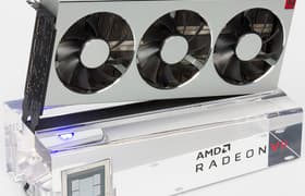 AMD Radeon VII (16 ГБ) дает нам первое представление о самом тонком на сегодня техпроцессе для GPU — 7 нм. Переход на него позволил резко поднять частоты работы GPU, уменьшить площадь самого кристалла, что дало возможность на такой же площади подложки, как у Radeon RX Vega 64, разместить уже 4 модуля HBM2, не только получив вдвое больший объем памяти в 16 гигабайт, но и увеличив в 2 раза ширину шины обмена с памятью, а это обеспечило дополнительный прирост производительности относительно Radeon RX Vega 64, особенно в высоких разрешениях.