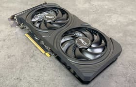 Palit GeForce RTX 4060 Infinity 2 OC (8 ГБ) — одна из самых выгодных к приобретению на сегодня видеокарт. Она имеет относительно компактные размеры 25×12,5×4 см, занимает 2 слота в системном блоке и хорошо подходит для небольших корпусов. При этом система охлаждения вполне эффективная и тихая. Карта может потреблять до 133 Вт, имеет стандартный 8-контактный разъем питания, лишена подсветки и предлагает стандартный набор видеовыходов: три DP 1.4a и один HDMI 2.1.