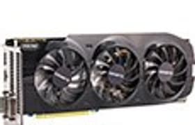 Gigabyte GeForce GTX 680 OC 4096 МБ (GV-N680OC-4GD) — как всегда, отлично выполненный компанией Gigabyte вариант GeForce GTX 680. Ускоритель имеет много плюсов в плане оверклокинга, реально может стать удачной покупкой для энтузиастов (если их не смутит цена). Следует учитывать, что акселератор займет 3 слота в системном блоке, да и длина карты весьма приличная — 285 мм. Что касается интересующего многих вопроса, нужны ли 4 гигабайта на борту, то ответ: пока не нужны.