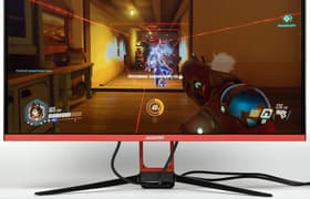 Это игровой монитор высокого класса, подходящий для очень динамичных игр. К его особенностям относятся изогнутый экран, игровой дизайн и красная подсветка на задней панели. Есть поддержка частоты обновления до 165 Гц включительно и возможность работы в режиме HDR. Несмотря на явную ориентацию на геймеров, монитор получился достаточно универсальным, пригодным, например, для комфортного выполнения офисной работы и для просмотра кино, но не для работ, требующих улучшенной цветопередачи или размещения большого количества информации на экране. Неширокие углы обзора как по снижению яркости, так и по изменению цветов частично компенсируются тем, что экран изогнутый.