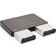 Большинство моделей современных домашних сетевых накопителей имеют похожий дизайн с вертикально расположенными отсеками для установки дисков на передней панели, а за охлаждение обычно отвечает крупный вентилятор на задней панели. В рассматриваемом сегодня устройстве производитель реализовал нестандартную конструкцию корпуса и исключил активную систему охлаждения. Это позволило создать тихую модель, для которой может найтись место в стойке с аудио/видеоаппаратурой.