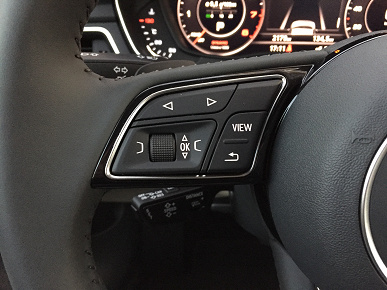 Рулевая колонка тестового Audi A4 имеет механическую регулировку по длине и высоте, что в контексте автомобиля стоимостью больше 4 миллионов рублей смотрится незатейливо и даже диковато. Судя по информации из конфигуратора на сайте производителя, такой опции, как рулевая колонка с электроприводом, а следовательно, и памятью положения, для Audi A4 не существует в принципе.