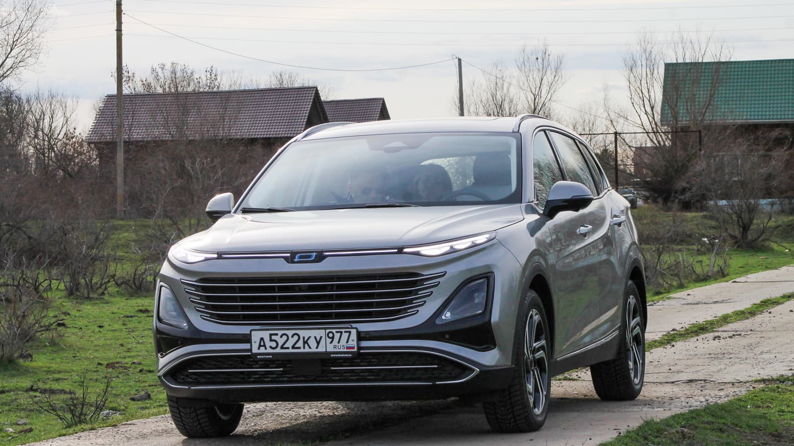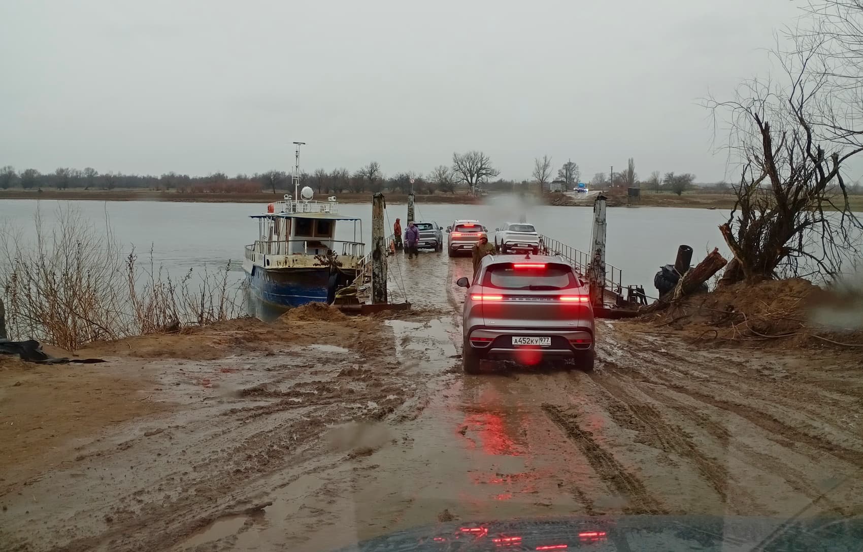 В грязь на Bestune T90 лучше либо совсем не соваться, либо заранее, одев сапоги, «прощупать» маршрут следования. Именно так мы поступили, когда подъезжали по раскисшей колее к парому через реку Гандурино. Полный привод машине не положен даже в топовой версии, и в этом плане кроссовер теряет очки в сравнении с теми же Chery Tiggo 8 Pro Max и Soueast S07.