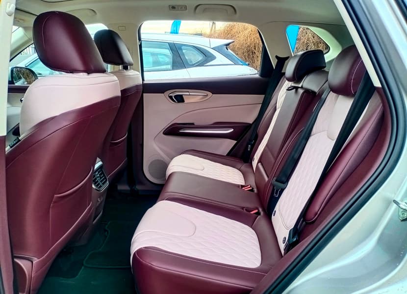 Расстояние между осями у Bestune T90, с его габаритной длиной 4718 мм, составляет 2772 мм. Это неплохой показатель, особенно в сравнении с ближайшими соперниками Changan CS 75Plus и Chery Tiggo 8 Pro Max (по 2710 мм). Он нам важен, прежде всего, в том случае, когда мы рассматриваем просторность салона. Она на высоте: свободу ощущаешь и за рулем, и на переднем кресле, и на заднем диване. За спиной водителя при желании можно чуть ли не возлежать, спинка второго ряда сидений подлежит регулировке. Третьего подголовника здесь почему-то нет, притом, что втроем при острой необходимости ехать можно.