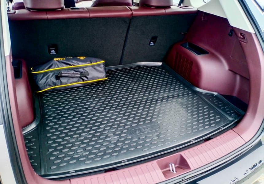 Литраж грузового отсека производитель почему-то не озвучил, но на глазок он объемистый. Здесь присутствуют небольшие ниши на арках, крючки, розетка, и «подпол» в два уровня. Шторку не ищите, ее нет даже в версии Flagship.