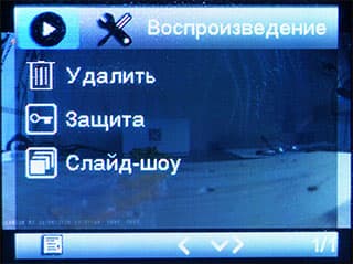 Просмотр записанных на карту памяти роликов производится в программном модуле, который вызывается нажатием одной из кнопок. Здесь же текущий ролик можно удалить или перенести его в защищенную папку, чтобы исключить стирание при последующей циклической записи.