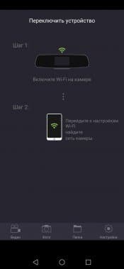 Соединение регистратора с мобильным устройством (смартфон или планшет) производится самым простым, банальным способом из всех возможных: