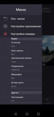 Настройки регистратора, доступные в приложении, также разбиты на категории. И, как и в самом регистраторе, фотонастройки здесь будут активны только после того, как аппарат переключен в режим фотокамеры (о ненужности такого режима мы уже говорили). По умолчанию регистратор работает в видеорежиме.