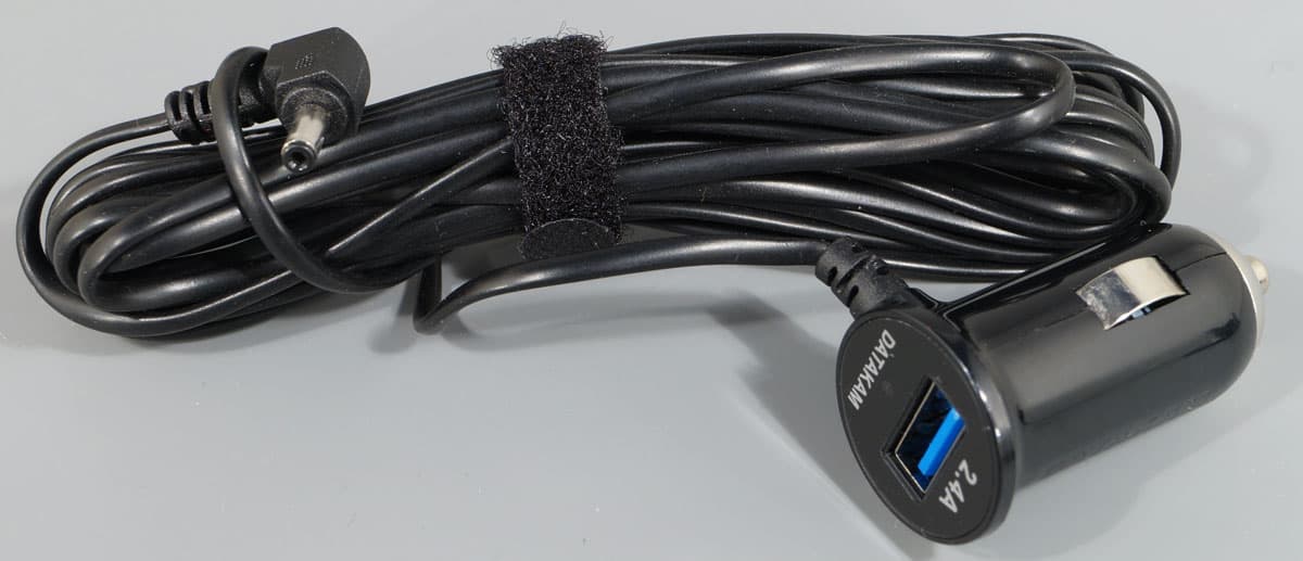 Адаптер прикуривателя, прилагаемый ко всем трем моделям, одинаков. Он может работать от автомобильной бортовой сети 12 или 24 вольта и дает необходимый для регистратора ток, при этом позволяя запитать еще одно устройство — смартфон, к примеру. Причем запитать током с силой в 2,4 А.