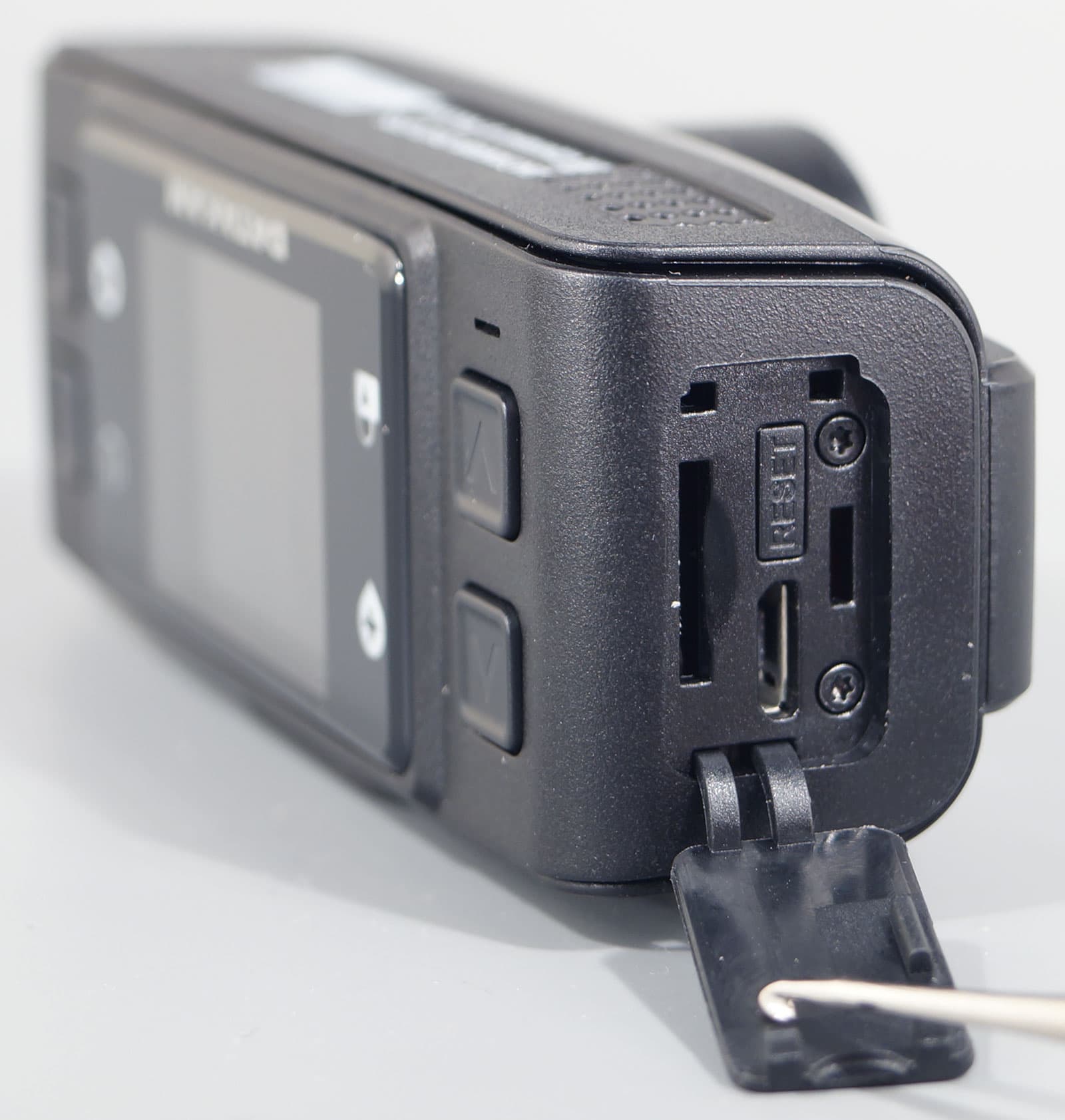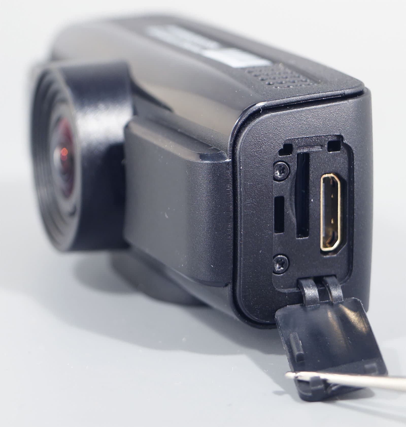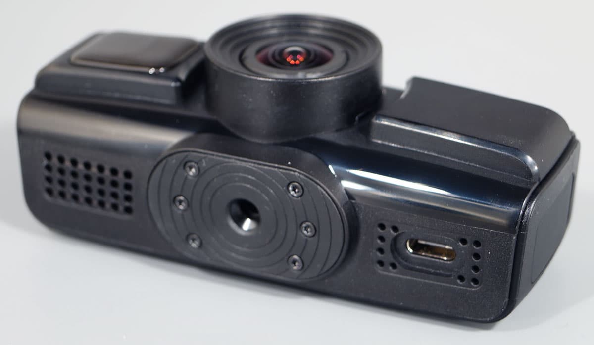 Но основное различие выдает дополнительный видеовход для второй камеры, который расположен сверху, правее центральной крепежной площадки. Этот видеовход выполнен в формате USB Type-С и способен принимать видеопоток, одновременно отдавая камере питание, необходимое ей для работы. Главное преимущество такого разъема — его двусторонняя конструкция. Подсоединяя камеру, не нужно выбирать правильную сторону. Это огромный плюс, о нем вспоминаешь, когда в тесных условиях, в зимней одежде, да еще и вслепую подсоединяешь камеру к регистратору.