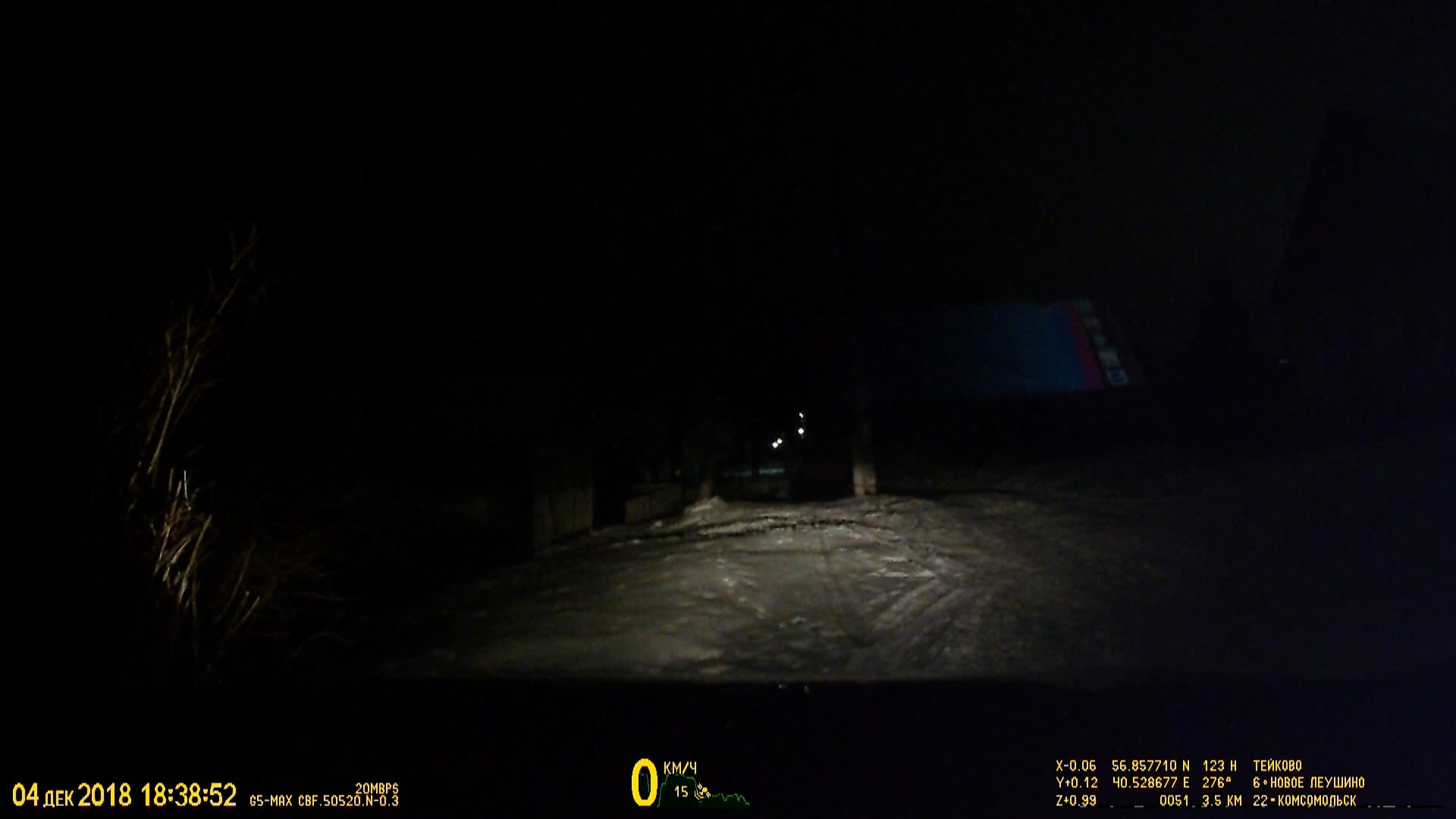 Проехав мимо автомобиля, стоящего на обочине, и просмотрев полученные записи с обеих камер, мы убедились, что номер этого автомобиля становится различим на расстоянии 8-10 метров от передней и задней камеры. Учитывая вечные декабрьские полусумерки, это великолепный показатель.