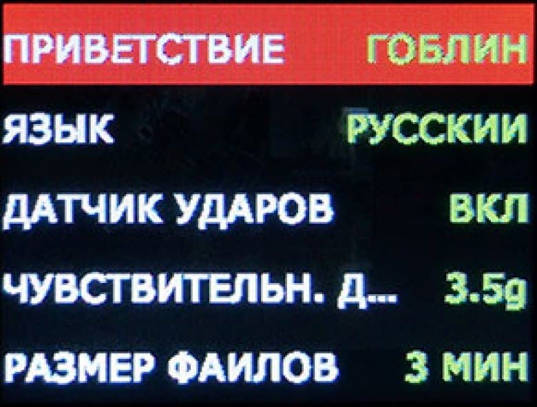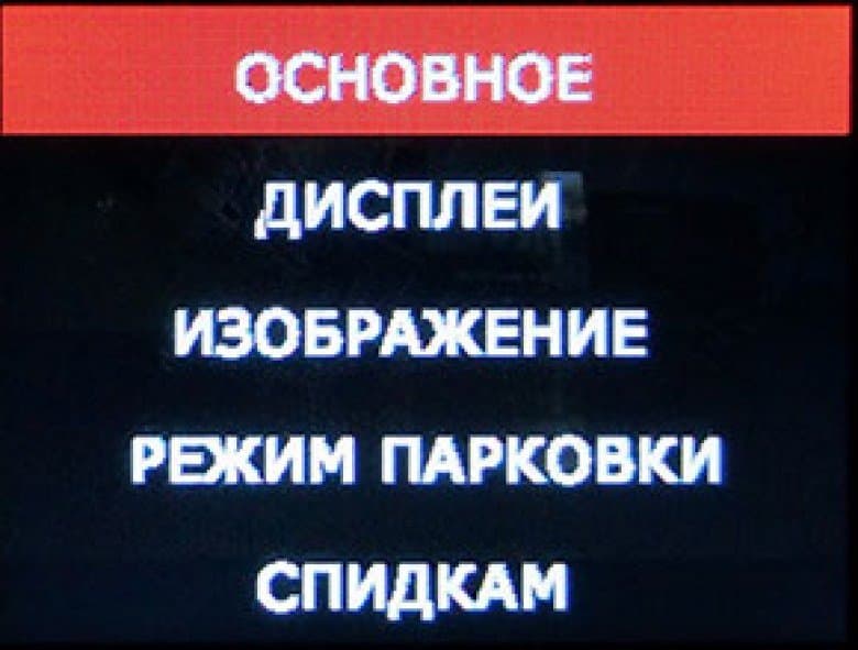 Служебное меню в режиме простоя состоит из трех пунктов, главный ведет на многочисленные настройки. Они, в свою очередь, состоят из разделов, отведенных изменению системных параметров, настроек дисплея, изображения, а также настройкам поведения в режиме парковки и параметрам Speedcam.