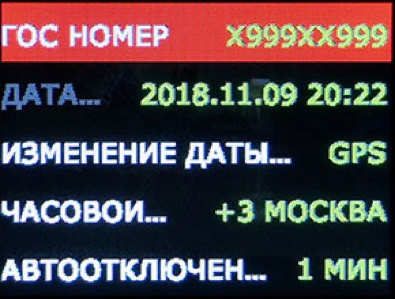 Во время движения регистратор может отображать на своем дисплее текущие время и скорость, количество доступных спутников, и прочую информацию.