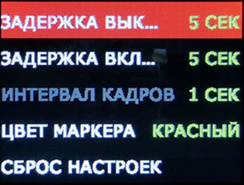| Задержка перед выключением | от 5 секунд до 30 минут |