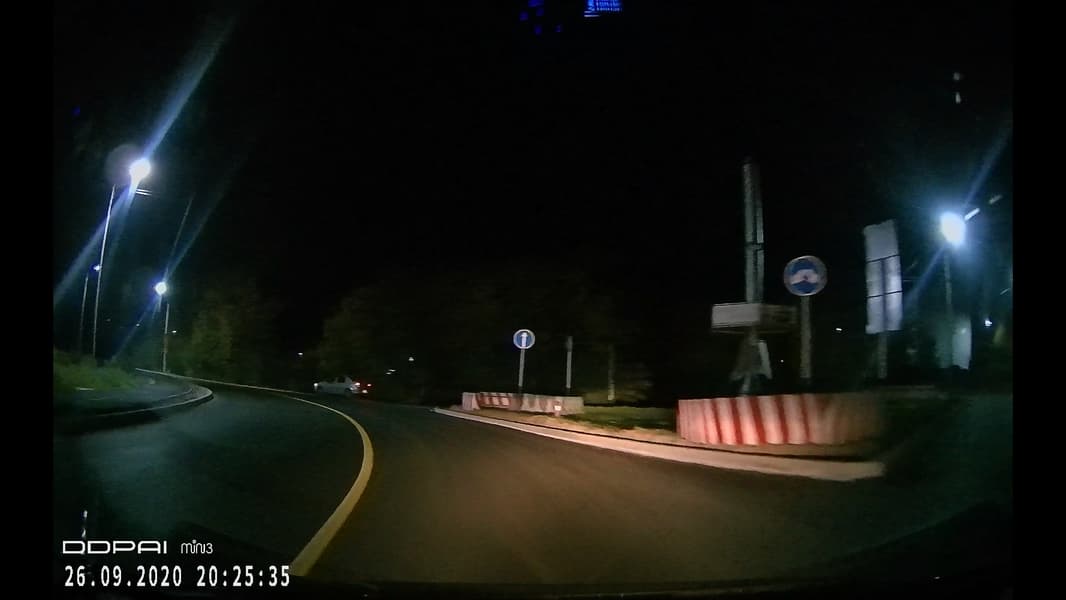 Эти кадры подтверждают стандартную чувствительность сенсора регистратора, которая «благодаря» микроскопической оптике не в состоянии выдать четкую картинку при недостатке освещенности. К тому же, в ночной сцене мы наблюдаем известное двоение объектов. Это результат долгой выдержки, которая устанавливается регистратором автоматически.