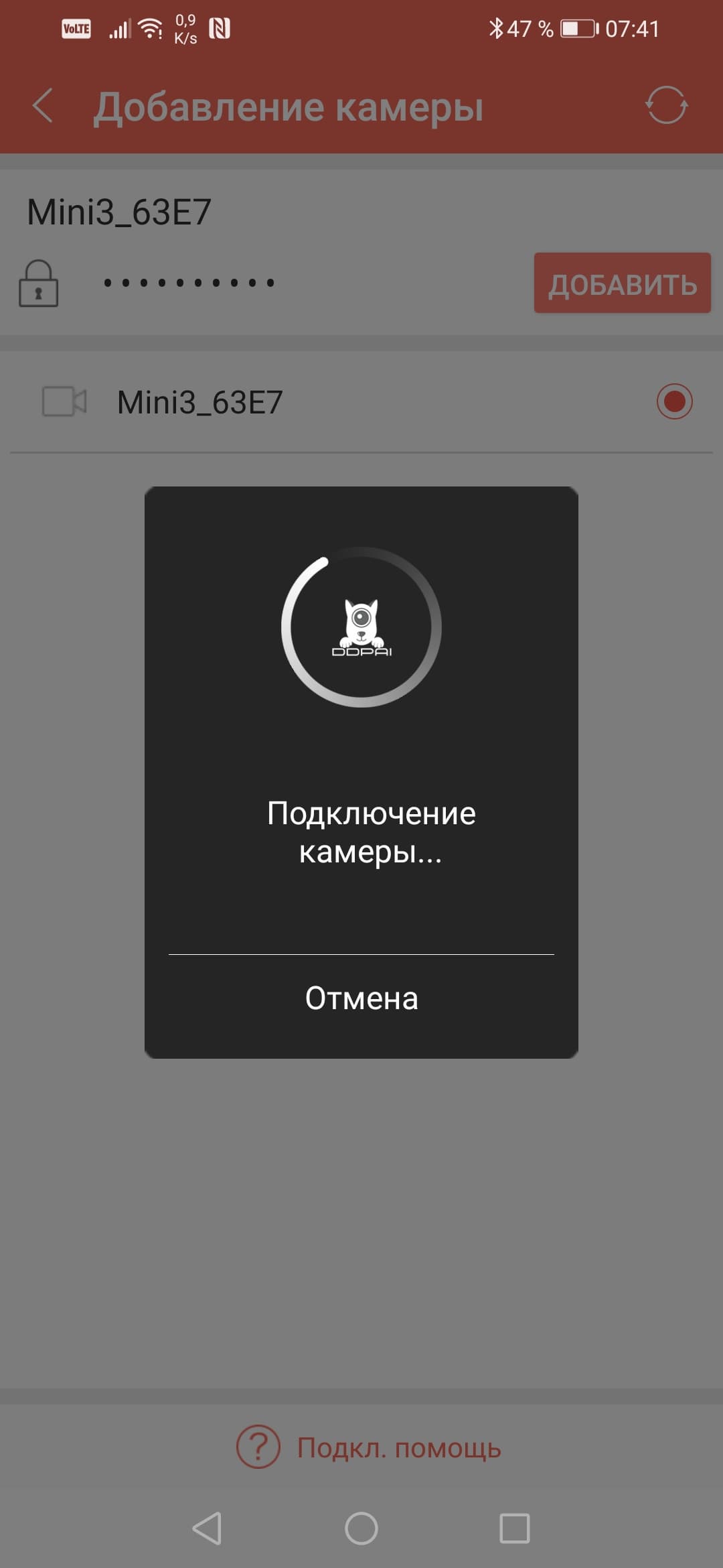 - Подключение смартфона к точке регистратора, которая в нашем случае носит имя DDPAI_Mini3_63E7 (пароль незатейливый: 1234567890)