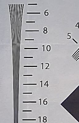 Разрешающая способность видео, снятого регистратором при хорошем свете, достигает 1000 ТВ-линий по горизонтальной стороне кадра в старшем режиме 2K+ (2560×1600). И, «как ни странно», ровно такую же разрешающую способность дает «младший» режим Full HD (1920×1080). Конечно, абсолютно точные цифры получить трудно — мешает выраженный алиасинг (ступенчатость контрастных границ), что указывает на пропуск строк при сканировании сенсора и недостаточно аккуратное масштабирование картинки (типично фотоаппаратный косяк, так снимали все зеркалки прежних поколений).