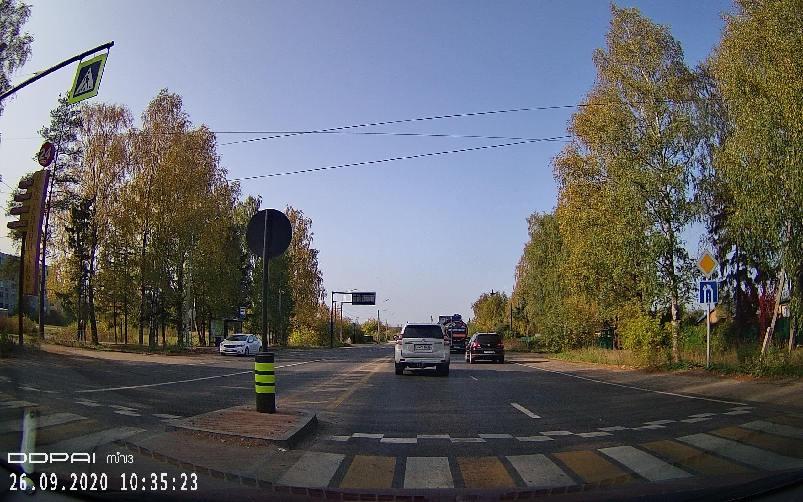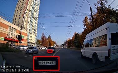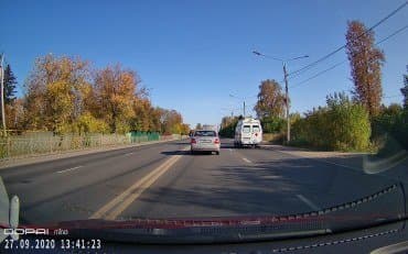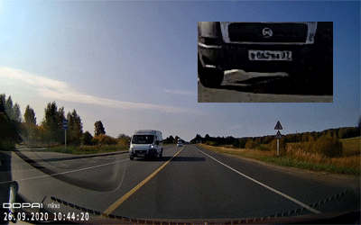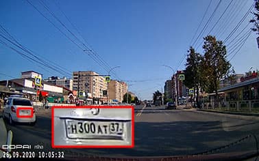 Первый стоп-кадр дает ответ на вопрос «нужен ли больший размер кадра». Ответ был такой: иногда. Здесь как раз и приведен тот самый иногдашний случай. Благодаря большому размеру кадра разобрать номер встречного авто становится легче, но лишь при условии, если пользователь не владеет банальными приемами увеличения изображения во время просмотра. Будь это же видео снято в режиме 1080p, разница в детализации была бы исчезающе мала. Также отметим важное свойство регистратора: даже по краям кадра детализация остается на высоком уровне, что говорит о действительно неплохом качестве оптической системы, которая не мылит края, несмотря на выраженное искажение «рыбий глаз».