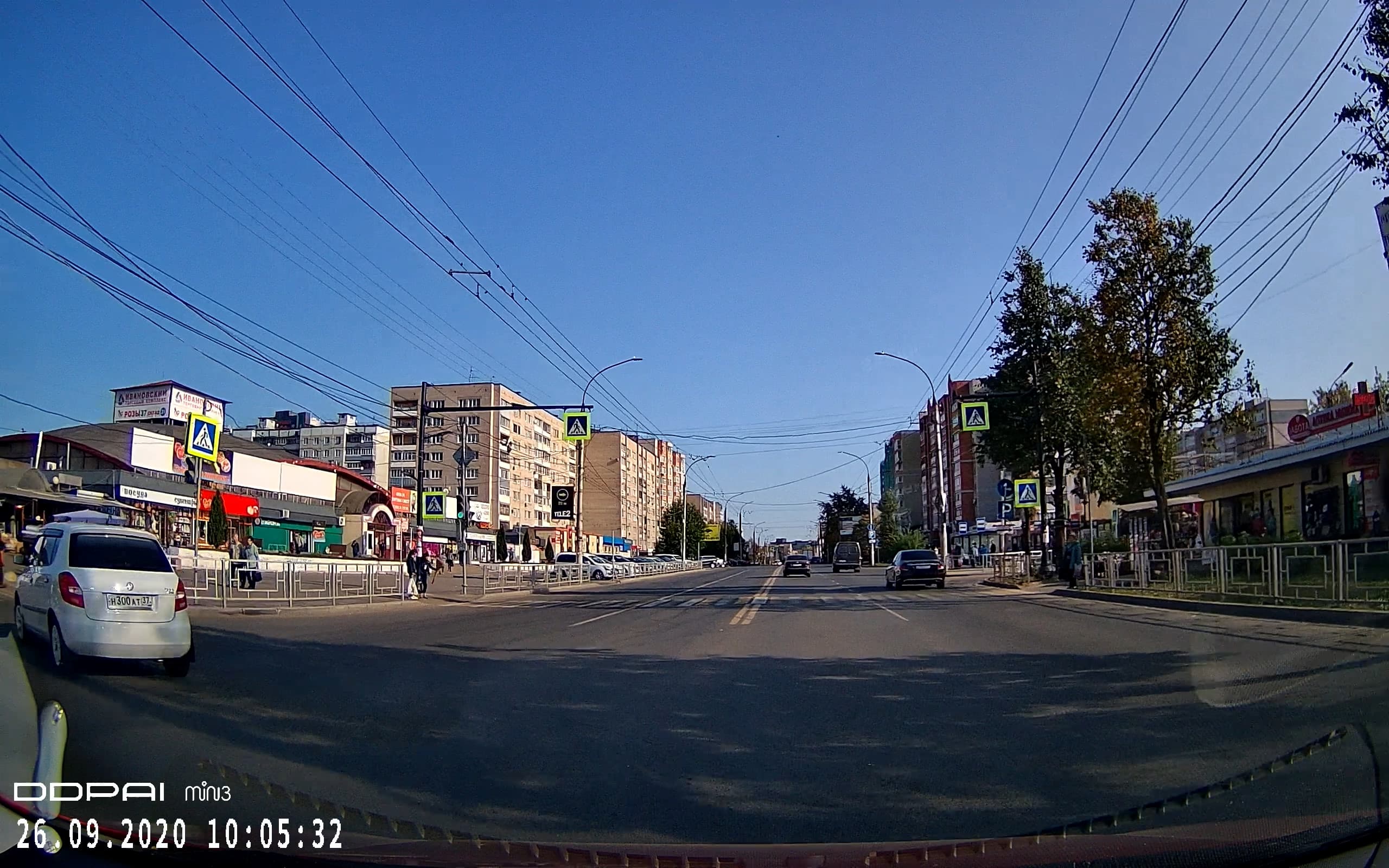 Кстати, из этих же стоп-кадров можно наблюдать очень неплохое (для недорогого регистратора) качество сжатия картинки. Но это статика. Взглянем, как работает кодек при наличии движения в кадре. Для начала при невысокой скорости и с хорошей освещенностью.