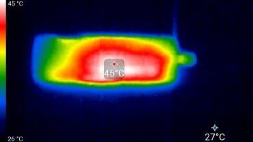 На снимках видно, что разработчики зря не предусмотрели вентиляционные отверстия в корпусе аппарата. Кое-где температура корпуса достигает 45 °C. Казалось бы, не опасно. Однако регистратор ведь крепится на лобовое стекло автомобиля, на самом солнцепеке. И при выключенном кондиционере, который обдувает зону крепления регистратора, аппарат рискует получить аварийный перегрев.