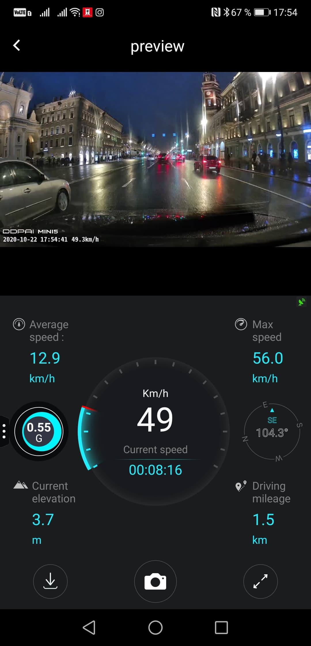 DDPAI Mini5 действительно соответствует указанным на сайте производителя характеристикам: он выдает весьма неплохое видео со вполне честным 4К-разрешением (требовать еще большего качества от видеорегистратора, право слово, не стоит — чудес на свете не бывает), поддерживает Wi-Fi 5 ГГц и довольно шустро общается по нему со смартфоном, 64 ГБ памяти тоже в наличии.