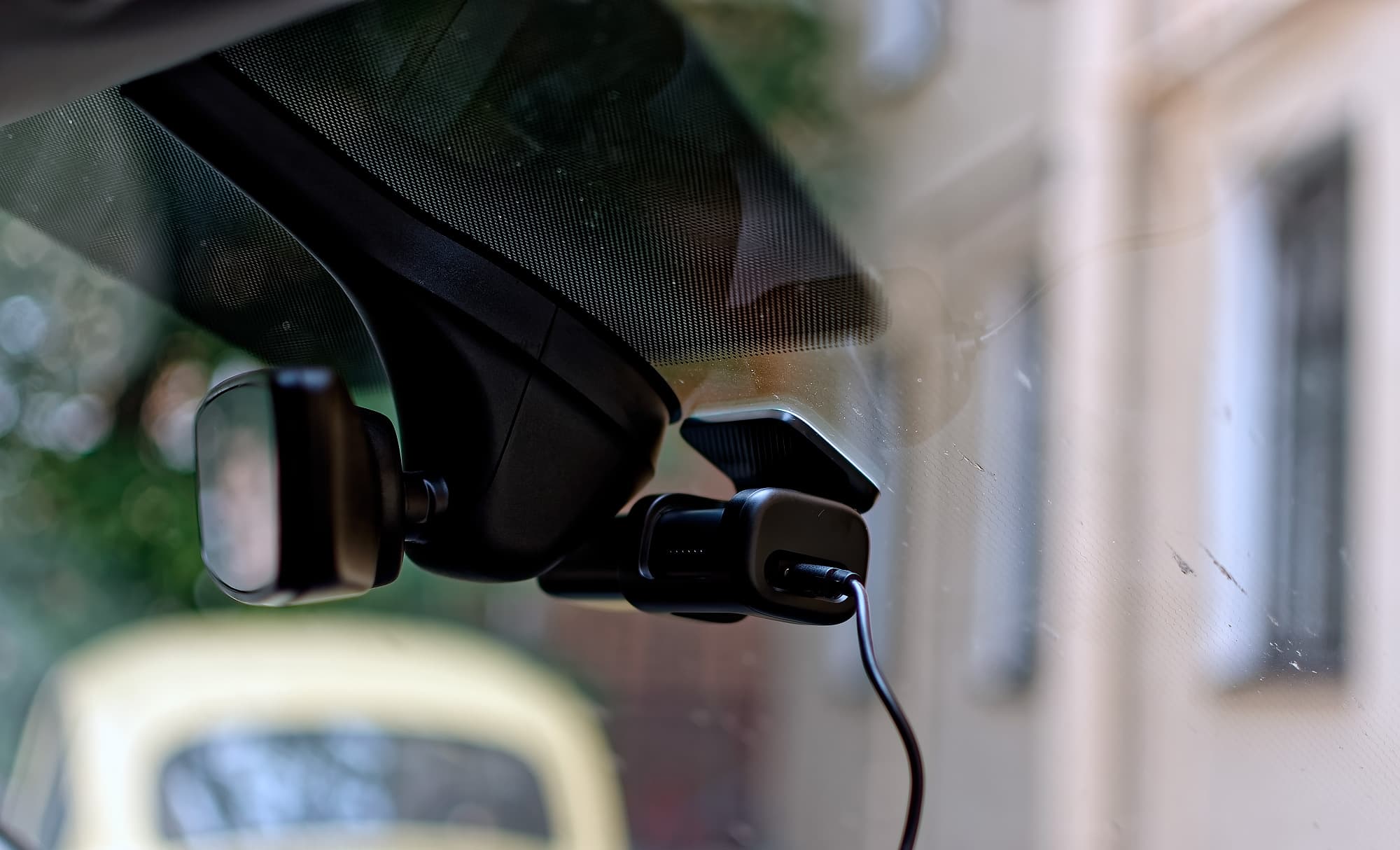 Видимость регистратора с внешней стороны можно оценить как слабую: сам прибор черный, кронштейн черный, оба небольшого размера. Было бы совсем скрытно, но производитель по какой-то неведомой нам причине решил использовать для крепления белый скотч. Темно-серый здесь был бы в разы уместнее, и у 3М он точно есть, мы знаем.
