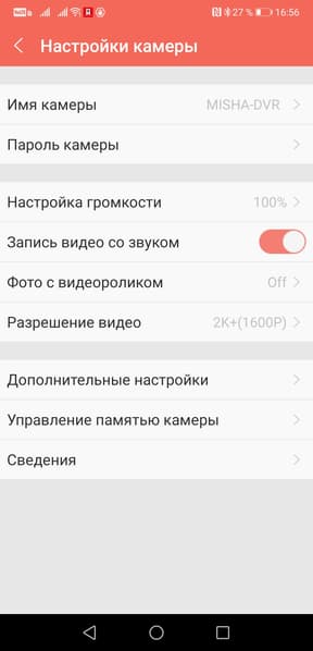 Два основных пункта, которые нас интересуют, это настройки камеры и настройки приложения. Начнем с камеры.
