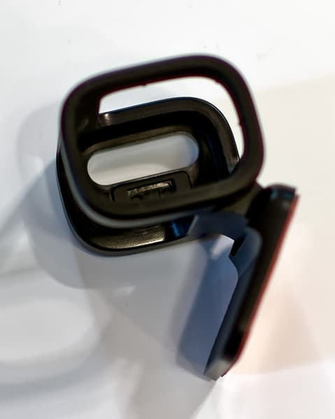 Видеорегистратор в кронштейн просто «задвигается» горизонтальным движением слева направо. С внутренней стороны одной из боковых стенок кронштейна находится «нечто», но его назначение осталось невыясненным, равно как и некоторые другие моменты (см. ниже).