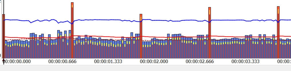 Битрейт в записи распределяется по ключевым (I) и промежуточным (P) кадрам. Двунаправленные (B) кадры в потоке отсутствуют.