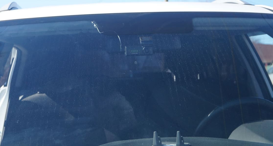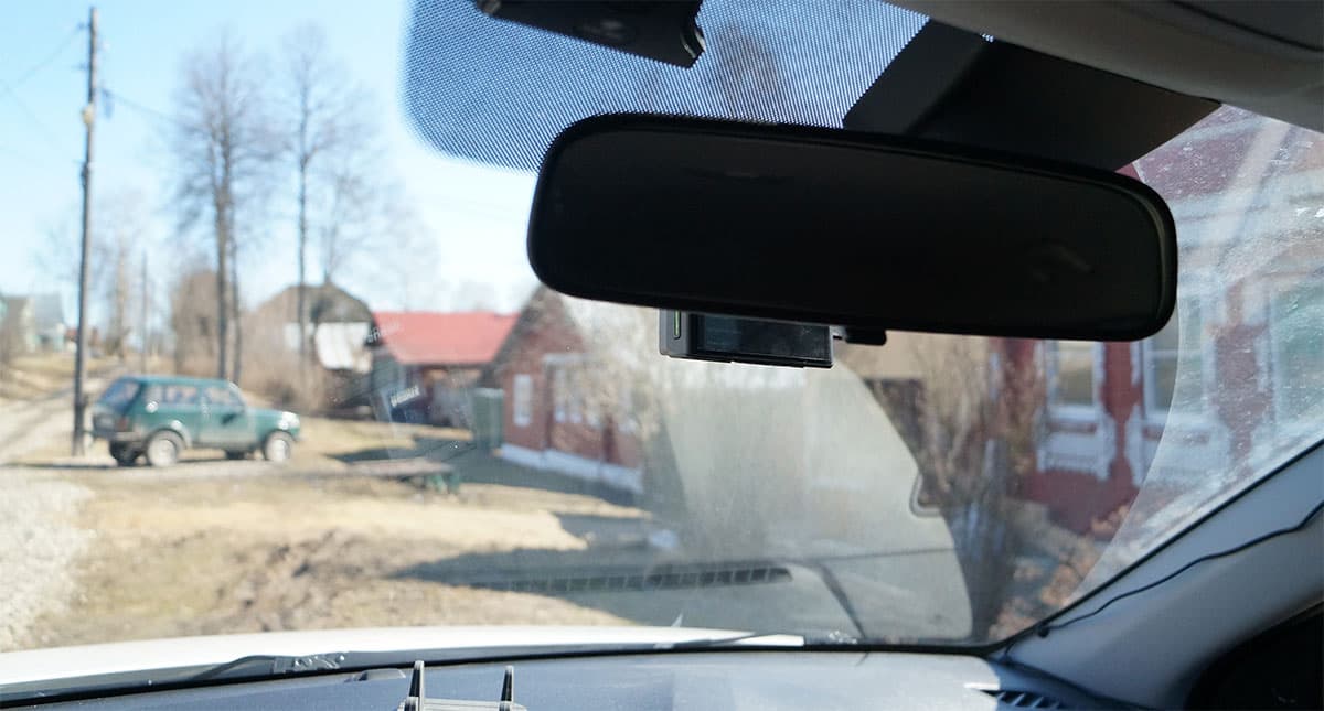 Установленный регистратор благодаря черному матовому корпусу почти незаметен снаружи. Хотя это как посмотреть... Если сбоку, на просвет — очень даже заметен.