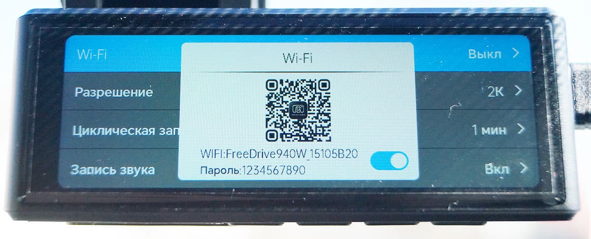 Wi-Fi-адаптер регистратора предоставляет возможность использовать мобильное приложение для общения с аппаратом. Процесс соединения регистратора со смартфоном чрезвычайно прост: в регистраторе нужно включить Wi-Fi-адаптер, после чего на смартфоне подключиться к появившейся точке, используя привычный пароль 1234567890. После этого можно запускать приложение.